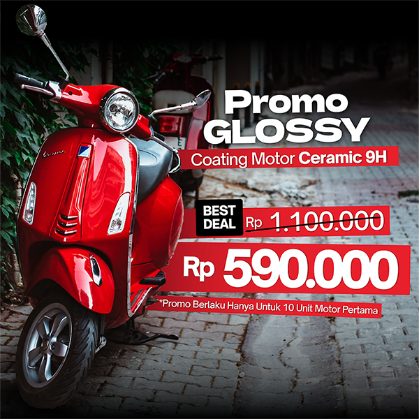 Coating super ceramic 9H+ adalah pilihan terbaik untuk melindungi bodi motor anda. Dengan lapisan bening yang tipis namun sangat kuat, coating ini tiga kali lebih tahan lama dibandingkan bahan ceramic biasa. Perlindungan ekstra ini memberikan efek kilap yang tahan lama, menjaga motor tetap mengkilap dan terlindungi dari goresan serta cuaca ekstrem, sehingga tampilannya selalu optimal. Cocok untuk anda yang ingin motor terlihat seperti baru lebih lama.