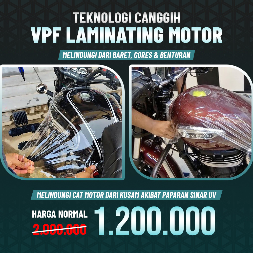 VPF (Vinyl Protection Film) untuk motor adalah pelindung berkualitas tinggi yang menjaga bodi motor dari goresan, debu, dan dampak cuaca sehari-hari. Terbuat dari bahan vinyl yang tahan lama, VPF membentuk lapisan transparan yang melindungi warna dan tampilan asli motor tetap mengkilap. Mudah dipasang dan dirawat, VPF sangat cocok bagi anda yang ingin motor tetap terlihat baru dan terlindungi dari kerusakan ringan saat berkendara. Solusi perlindungan praktis agar motor selalu tampil maksimal.