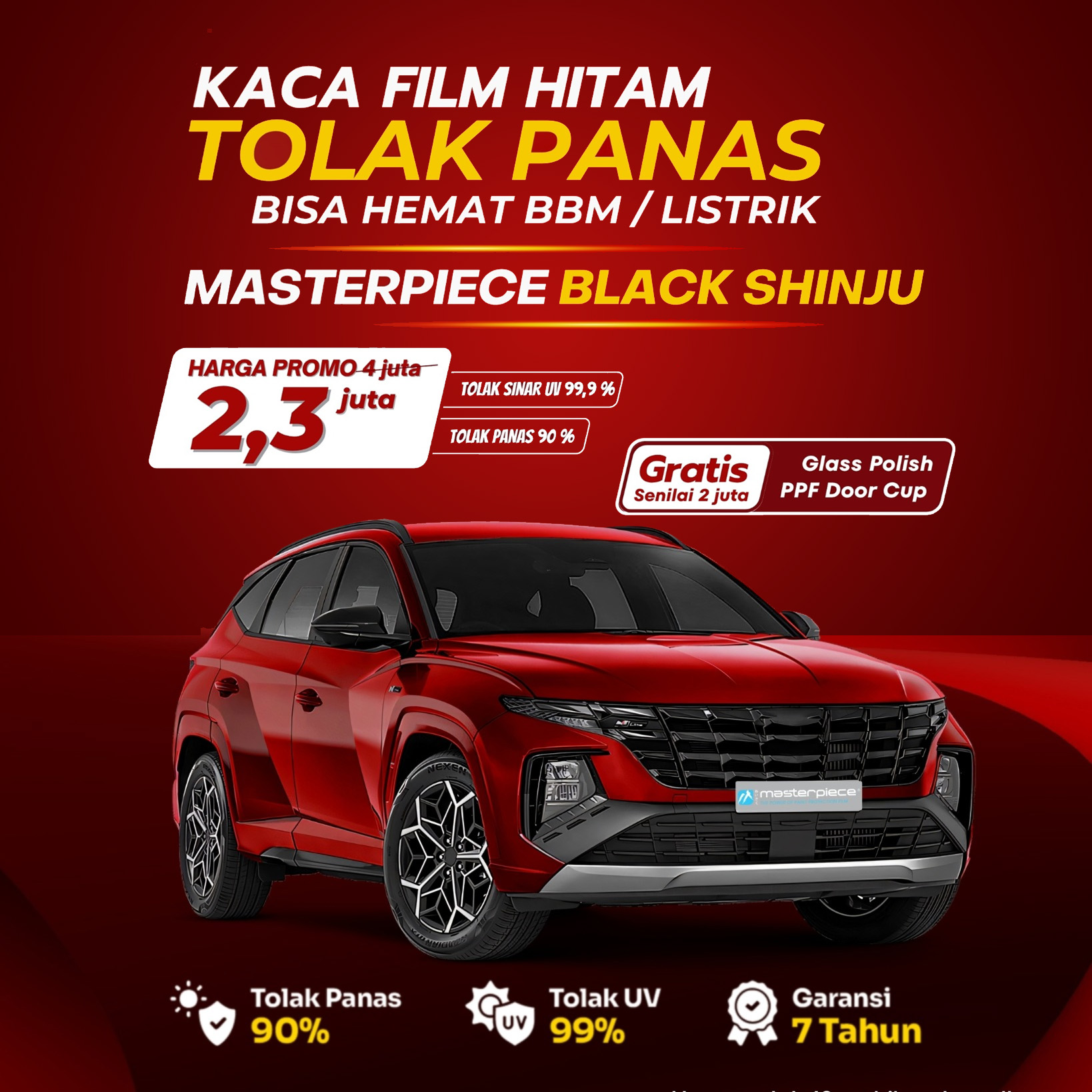 Kaca film MASTERPIECE dapat menolak panas dengan maksimal, menolak UV hingga 99% (UV400), mempunyai Drive Night Vision Techology, pandangan jernih (tidak bias), gelap dari luar (waktu siang hari) terang dari dalam (waktu malam hari), tidak mengganggu sinyal handphone dan GPS