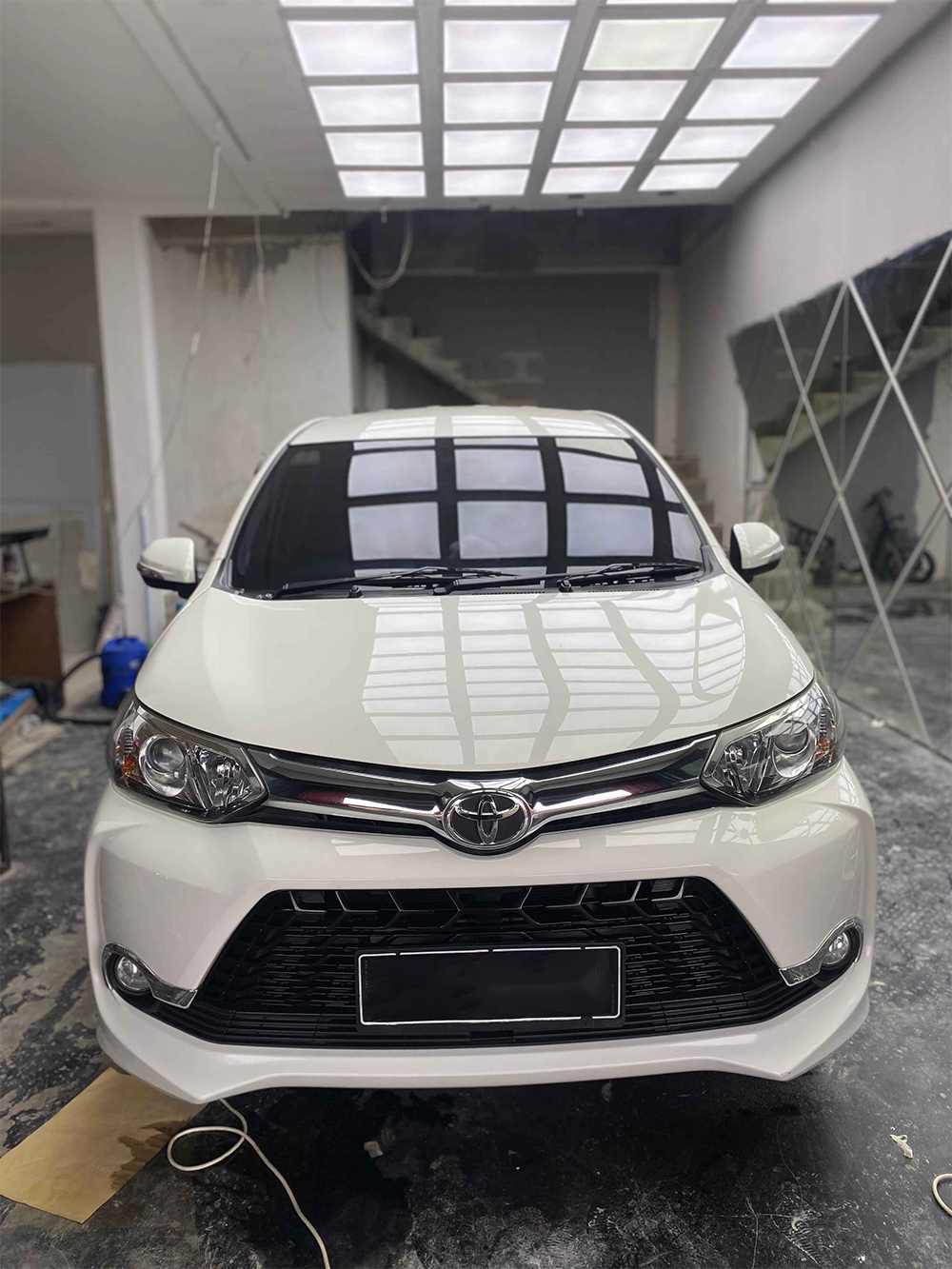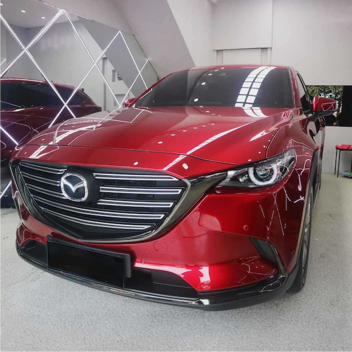 Coating bahan super ceramic 9H+ (SiO2, kadar 99%) kualitas terbaik karena bening tipis tetapi keras, 3x lebih kuat daripada bahan ceramic biasa lainnya, efek kilap dengan jangka waktu lebih lama.